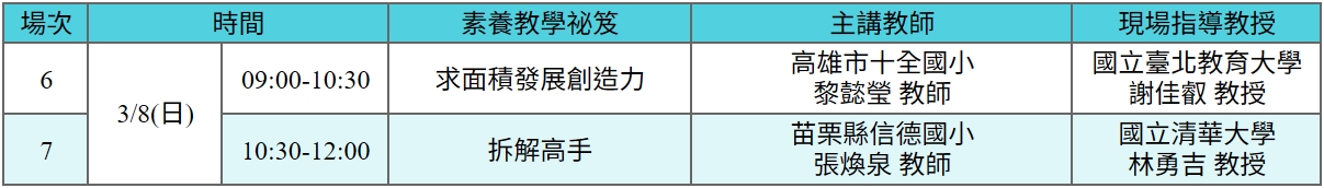 教育部補助國立臺灣師範大學數學教育中心辦理「素養教學祕笈準講師培訓工作坊」,114 年度規劃以各數學單元為單位,從JDM 計畫已設計的模組中,挑選教學現場最具需求的單元,將其精煉成更簡潔且實用的「數學素養教學秘笈」。期望為教師提供一套操作簡單、重點明確的教學工具,協助減輕備課負擔,提升教學效益,進一步推動並深化數學素養的實踐與發展。